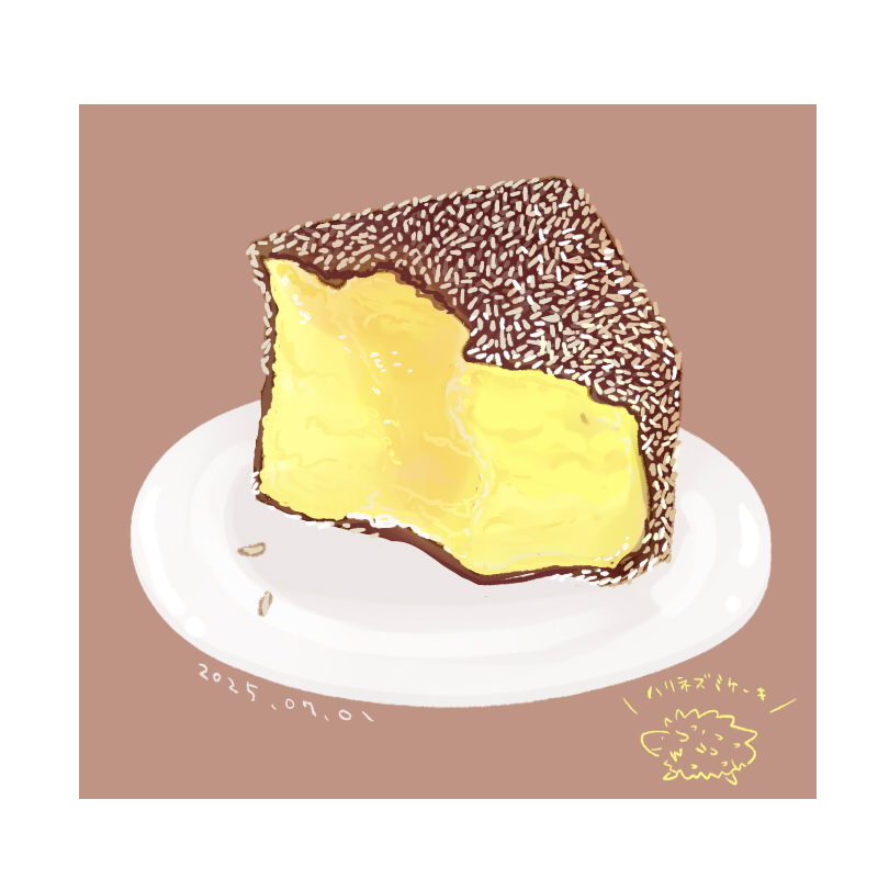 ラミントンをはじめて食べて、おいしかったので描きました。近所のパイ屋さんで売っていたもの。名前の由来は人名だとか、諸説あるようですね。