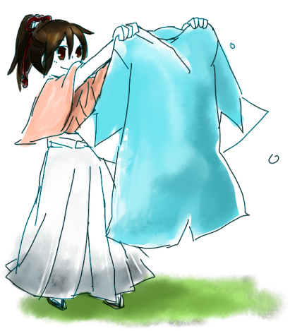 袖からめて→背中にまわして→袖からめて→背中にまわして→肩のあたりで結ぶ