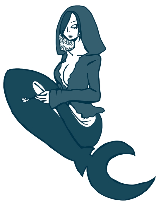 黒髪ショートでフードで白目で唇厚めの人魚でしかも占い師。